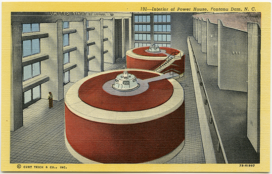 © Curt Teich & Co, Ind. 7B-H1997. Interior of the powerhouse of TVA’s