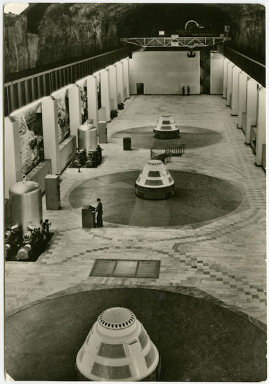 Ovanför de väldiga maskinrummen rör sig de vida, höga, jämnt löpande himlavalven. Stjärnornas glindrande, svagt skillrande, margfaldiga punkter sitter fästade i oändliga, djupa, täta skikt. Markens talrika fåror är fyllda av vit, skimrande is och löper parallellt ut mot det skiftande, silvergrå havet. Fält bortanför fält bildar symmetriska, ordnade mönster vars delar skiljs åt av jämnlöpande, smala pärlgrå fogar.