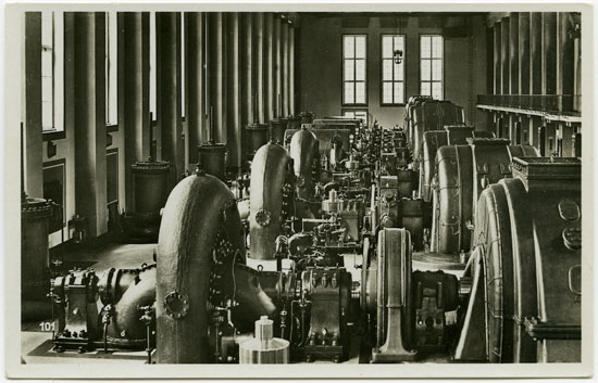 6:11, text på kortet: Maschinenhalle des Walchensee-Werks, 8 Turbinen von
