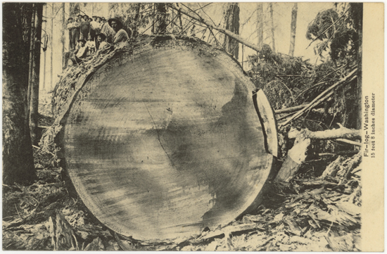 19:54, text på kortet: Fir – log – Washington. 15 feet 8 inches diameter.
