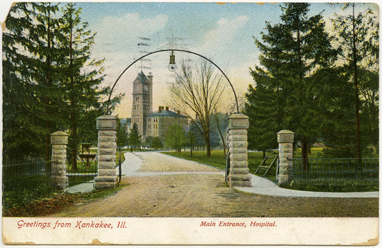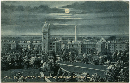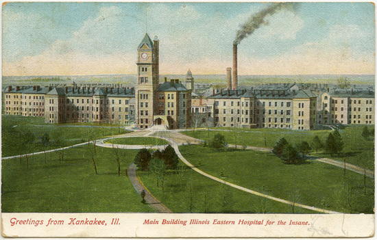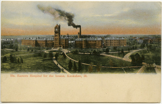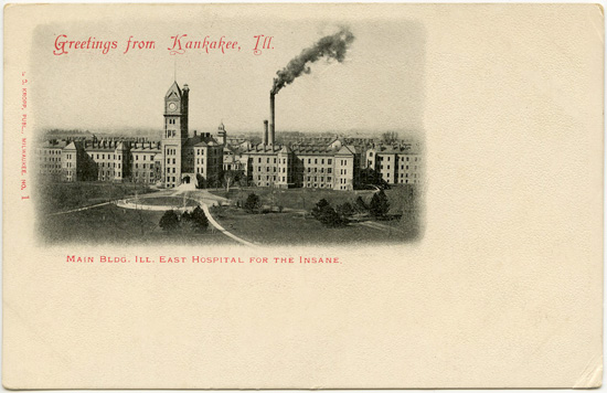 ett antal år tillbaka intagen på sinnessjukhuset i Kankakee, klämdes